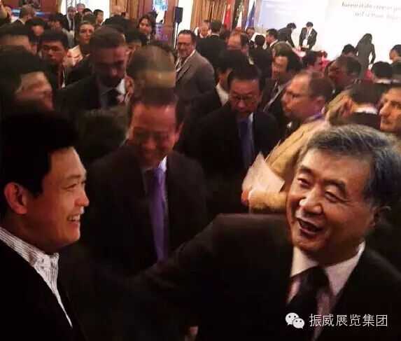 2015米蘭世博會中國國家館日活動期間,中國國務院副總理汪洋與振威展覽股份總裁張學山親切交談